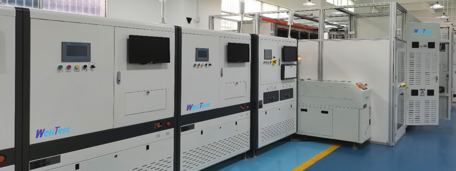 线体应用于PCBA的测试和老化,包含4台FCT和96台老化夹具。采用标准的SMT堆栈上料机+地轨式机器人取放料实现整线的自动化测试+老化+分选。